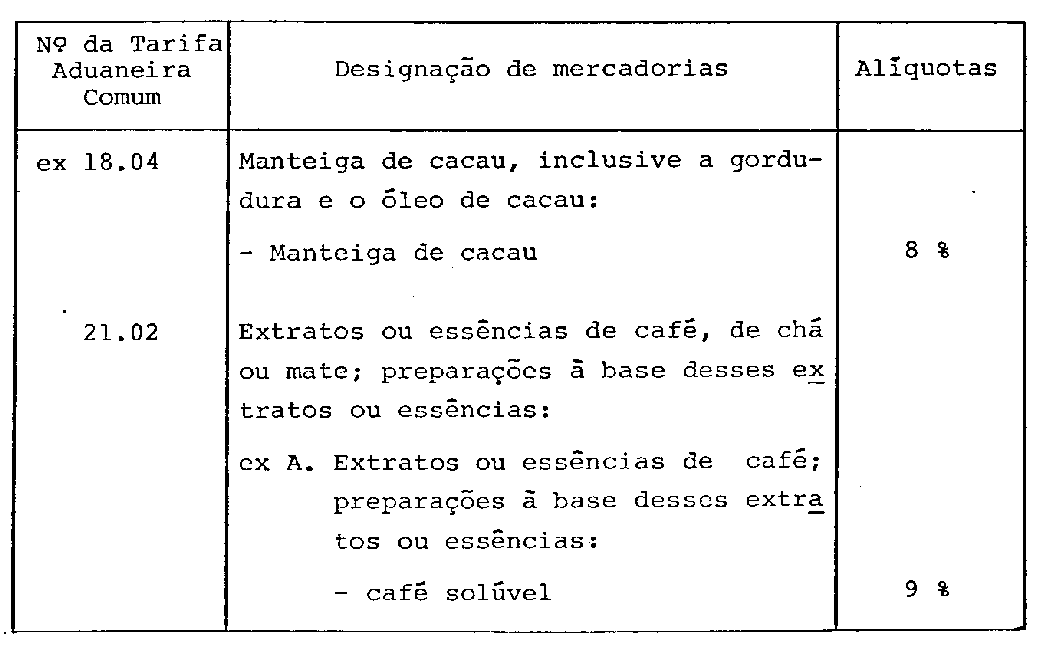 2. As importações preferenciais de que trata o inciso 1 se farão dentro dos limites de contingentes tarifários comunitários cujos montantes, no ano de 1974, foram de 21.600 toneladas para a manteiga de cacau, correspondente á posição ex 18.04, e de 18.750 toneladas para o café solúvel, correspondente à subposição 21.02 ex A.