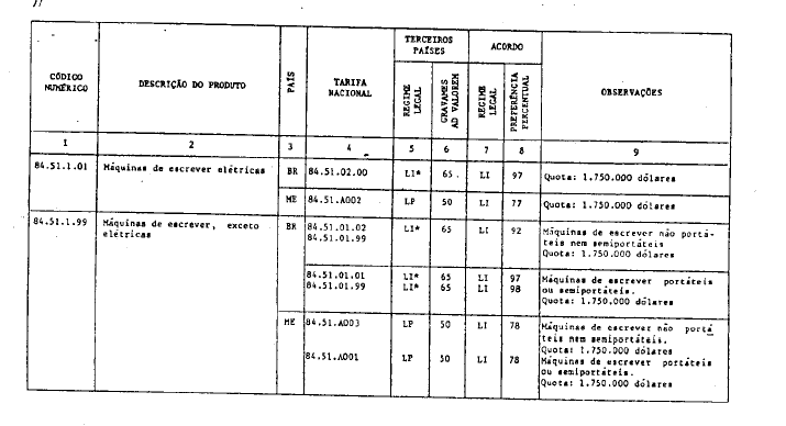 Parágrafo primeiro , As quotas acordadas pelo Brasil para a importação dos produtos registrados no referido Anexo I D), regerão de 1º de janeiro a 31 de dezembro de 1985.
