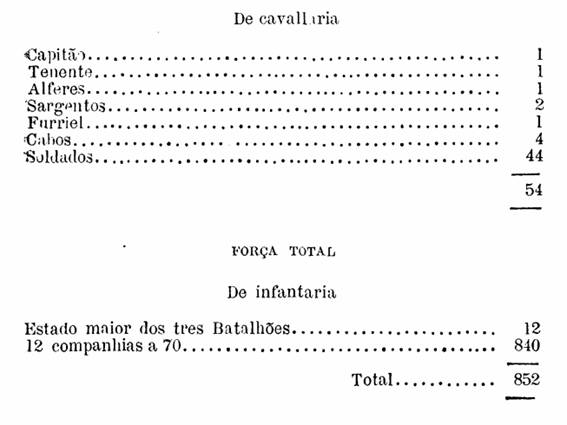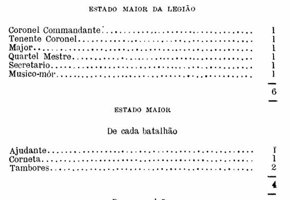 A Legião será composta de um Estado maior, de tres Batalhões e dois Esquadrões.