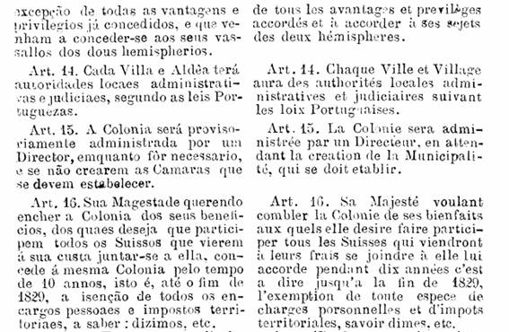 Condições pelas quaes Sua Magestade Fidelissima Ha por bem conceder no seu Reino do Brazil o estabelecimento de uma Colonia de suissos, composta de 100 familias, a que se refere o Decreto acima.