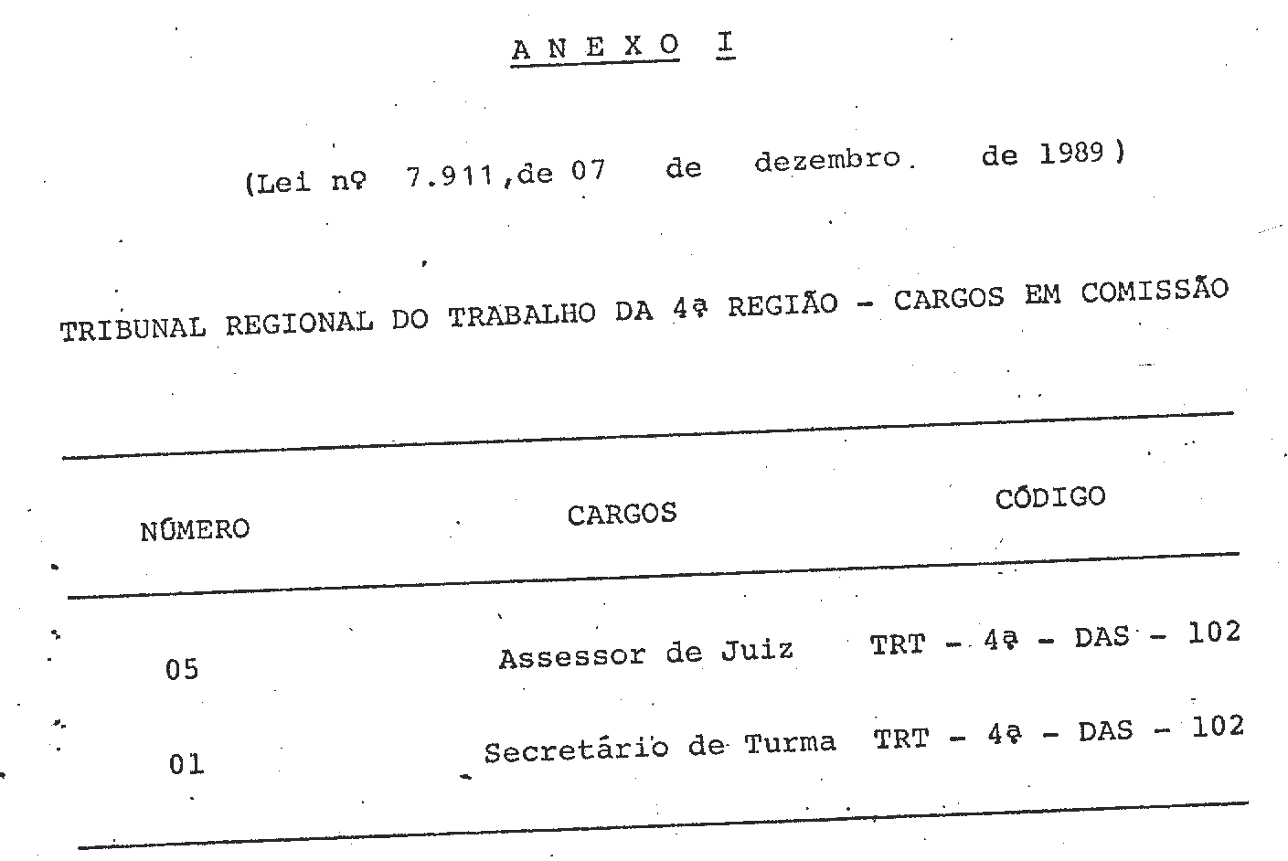 Art. 5º - São criados 5 (cinco) cargos em comissão de Assessor de Juiz, do Grupo Direção e Assessoramento Superior - Código DAS-102, e 1 (um) de Secretário de Turma, Código DAS-102.