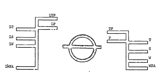 Linha de carga (T) .... mm (polegadas) acima de (S) (S) .... margem superior de linha que passa pelo centro do anel. (W) .... mm (polegadas) abaixo de (S) (WNA) .... mm (polegadas) abaixo de (S) (LT) .... mm (polegadas) acima de (LS) (LS) .... mm (polegadas) acima de (S) (LW) .... mm (polegadas) abaixo de (LS) (LWNA) .... mm (polegadas) abaixo de (LS) |
