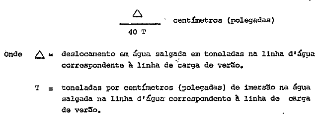2. Quando o navio estiver em água doce de densidade igual à unidade, a linha de arga apropriada pode ficar submersa da quantidade de água doce constante da tolerância respectiva mostrada acima. Nos locais em que a densidade for diferente da unidade, a tolerância deverá ser proporcional à diferença entre 1.025 e a densidade atual.