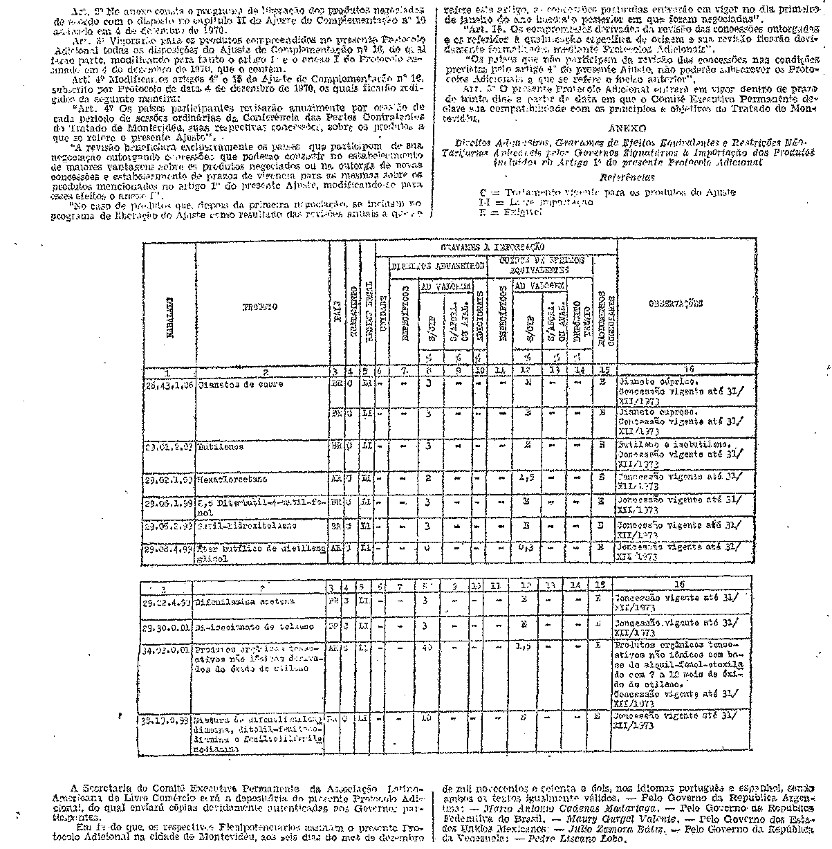 De acordo com o disposto no artigo 4º do Ajuste de Complementação número 16 sobre produtos das indústrias químicas derivadas do petróleo, e por ocasião do Décimo Segundo Período de Sessões Ordinárias da Conferência das Partes Contratantes do Tratado d Montevidéu, os Plenipotenciários que assinam o presente Protocolo Adicional, devidamente credenciados por seus respectivos Governos e cujos poderes, encontrados em boa e devida forma, foram depositados na Secretária do Comitê Executivo Permanente da ALALC.