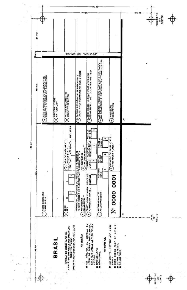 Art. 2º - O Cartão de embarque e desembarque, ou de entrada e saída, previsto neste Decreto, será impresso em duas vias em papel copiativo, de acordo com o modelo anexo, e deverá ser preenchido pelo viajante ou pelo transportador e entregue à Polícia Federal, em duas vias.