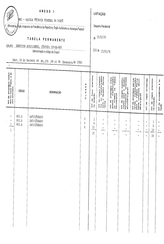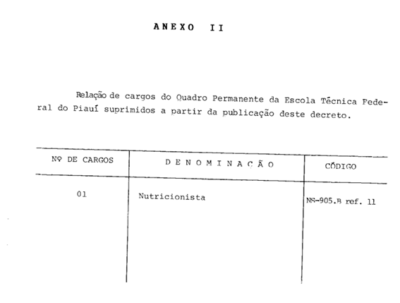 da Tabela Permanente da Escola Técnica Federal do Piauí, os empregos a serem