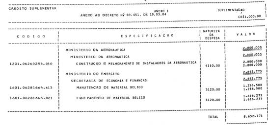 cinqüenta e dois milhões, setecentos setenta e três mil cruzeiros), para reforço