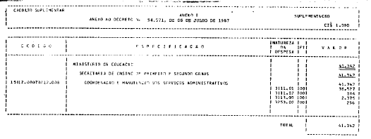 Ensino de Primeiro e Segundo Graus, o crédito suplementar de CZ$ 41.342.000,00