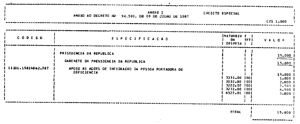 Presidência da República, o crédito especial de CZ$ 15.000.000,00 (quinze