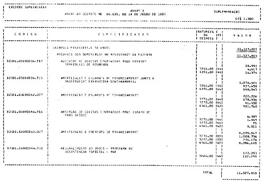 suplementar de CZ$ 11.327.803.000,00 (onze bilhões, trezentos e vinte e sete