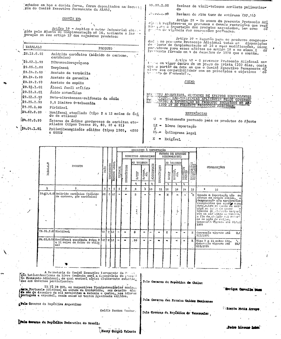 CONSIDERANDO que os Plenipotenciários do Brasil, da Argentina , do Chile, do México e da Venezuela com base nos dispositivos acima citados, assinaram em 18 de dezembro de 1974 o Oitavo Protocolo Adicional do Ajuste de Complementação nº 16;