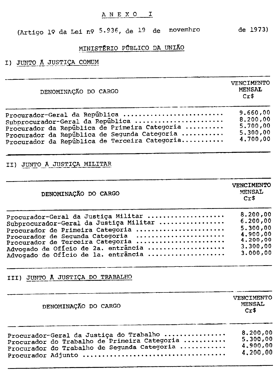 Art. 1º Os vencimentos dos membros do Ministério Público da União são os constantes do Anexo I desta Lei.