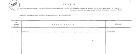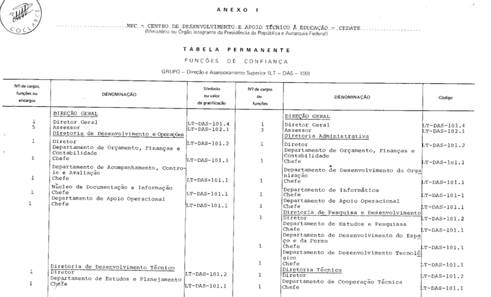 Art. 1º - São criadas, mantidas e transformadas funções de confiança, na forma do Anexo I deste decreto, para composição das Categorias Direção Superior, código: LT-DAS-101, e Assessoramento Superior, código: LT-DAS-102, do Grupo-Direção e Assessoramento Superiores, código: LT-DAS-100, da Tabela Permanente do Centro de Desenvolvimento e Técnico à Educação-CEDATE, órgão autônomo vinculado ao Ministério da Educação e Cultura.