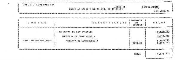 suplementar no valor de Cr$ 5.652.773.000,00 (cinco bilhões, seiscentos e