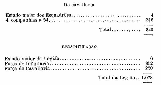 A Legião será composta de um Estado maior, de tres Batalhões e dois Esquadrões.