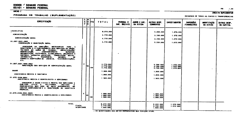 Republica-se o Quadro do Anexo 1 referente ao Senado Federal - Programa de Trabalho (suplementação), por ter saído em duplicidade na página 23557.