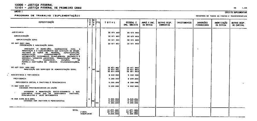Republica-se o Anexo I por saído com incorreção quanto aos valores das suplementações das Unidades Orçamentárias 12101 - Justiça Federal dc Primeiro Grau e 12106 - Tribunal Regional Federal 5ª Região.