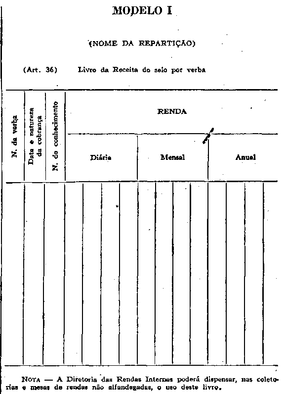 Art. 1º O imposto do selo (também denominado “Selo do Papel”) será arrecadado, em estampilha ou por verba, de acordo com a tabela anexa.