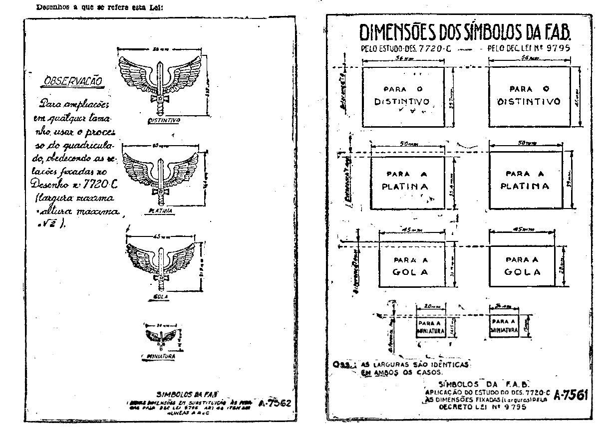 a) os símbolos da Fôrça Aérea Brasileira são desenhados segundo as inscrições constantes do desenho nº C-7.720 anexo;