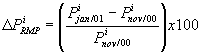 representa a variação percentual de preço da apresentação i entre 1o de novembro de 2000 e 31 de janeiro de 2001 e é calculado do seguinte modo: