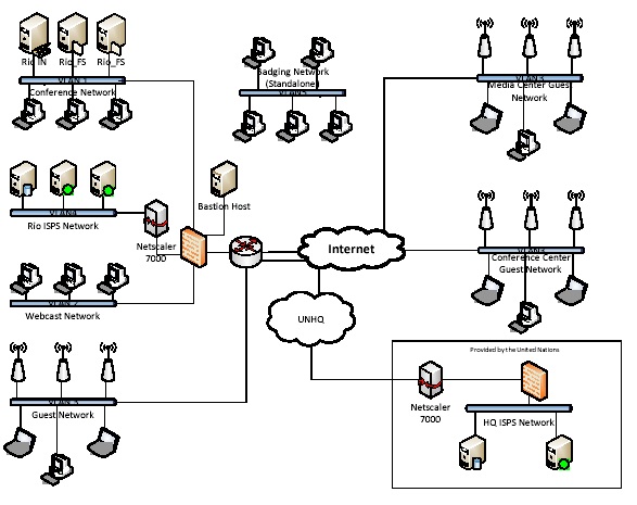 Os engenheiros de sistemas do pessoal local auxiliarão a equipe da OICT no planejamento, implementação e manutenção da rede TCP/IP da conferência. São responsáveis por garantir que a conectividade com a internet e com a rede UNHQ seja mantida durante todo o período da conferência.