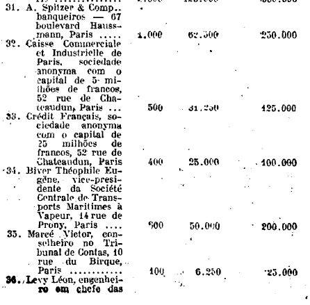 Que as sessenta mil acções de duzentos e cincoenta francos cada uma, todas a pagar em numerario, representando quinze milhões de francos, montante do capital da Compagnie de Navigation Sud-Atlantique, foram subscriptos por trinta e sete pessoas ou sociedades, denominadas, prenomeadas, qualificadas e domiciliadas na conformidade da lista que vae a seguir, e nas proporções constantes da mencionada lista.