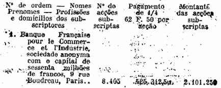 Compagnie de Navigation Sud-Altantique, sociedade anonyma com o capital de Fr. 15.000.000, dividido em sessenta mil acções de duzentos e cincoenta francos cada uma.