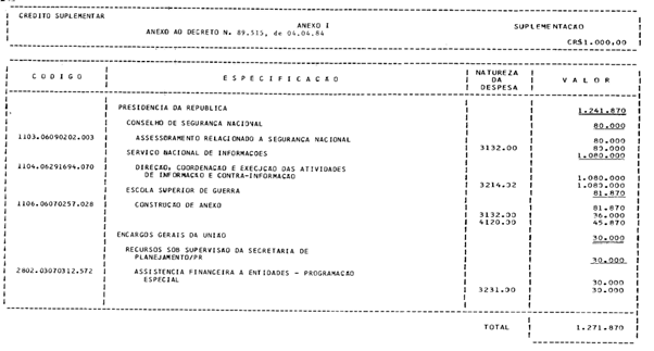 DECRETO No 89.515, DE 4 DE ABRIL DE 1984.