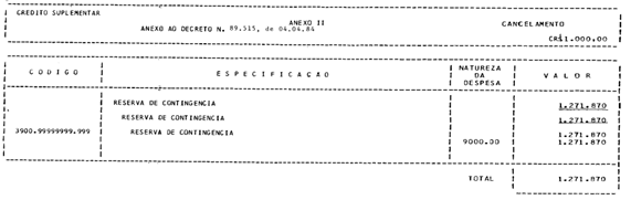 Art . 2 º - Os recursos necessários à execução do disposto no artigo anterior decorrerão de anulação parcial da dotação orçamentária indicada no anexo II deste Decreto e no montante especificado.