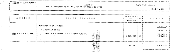 o crédito suplementar de CZ$ 500.000.000,00 (quinhentos milhões de cruzados),