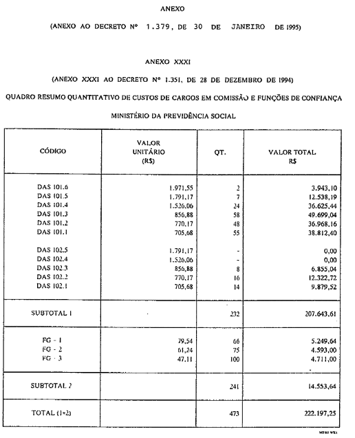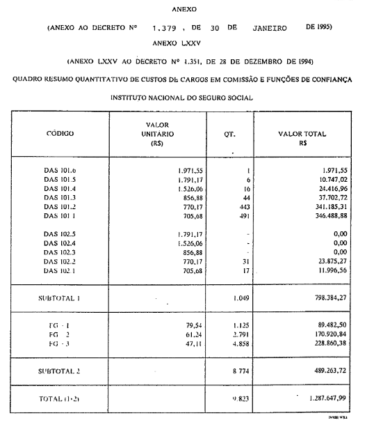 DECRETO Nº 1.379, DE 30 DE JANEIRO DE 1995.