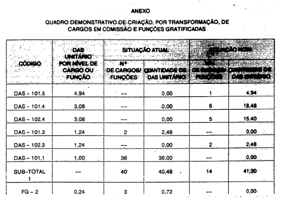 Art. 2º Ficam transferidos do Ministério da Administração Federal e Reforma do Estado para o Ministério do Planejamento e Orçamento 23 cargos em comissão do Grupo-Direção e Assessoramento Superiores - DAS, oriundos da extinção de órgãos da Administração Pública Federal, assim especificados: um DAS 101.5, seis DAS 101.4, sete DAS 102.4, dois DAS 102.3, dois DAS 101.2, três DAS 102.2 e dois DAS 102.1.