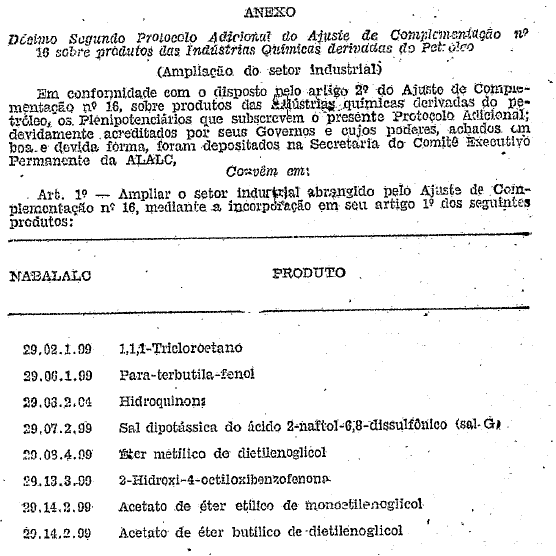 CONSIDERANDO que, de acordo com o disposto no artigo 4º do Ajuste de Complementação nº 16, sobre produtos das Industrias Químicas Derivadas do Petróleo posto em vigor, no Brasil, pelo Decreto nº 68.541, de 26 de abril de 1971, os Governos do Brasil, da Argentina, do Chile, do México e da Venezuela poderão ampliar anualmente o setor industrial abrangido pelo Ajuste;