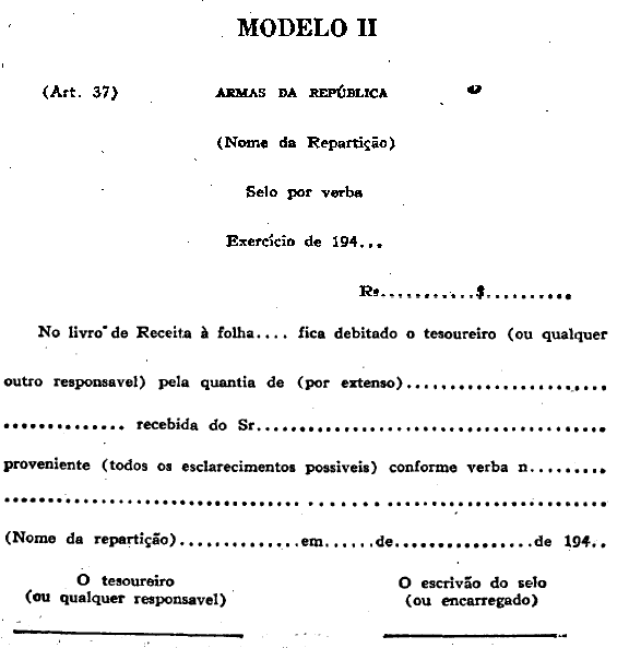 Art. 1º O imposto do selo (também denominado “Selo do Papel”) será arrecadado, em estampilha ou por verba, de acordo com a tabela anexa.