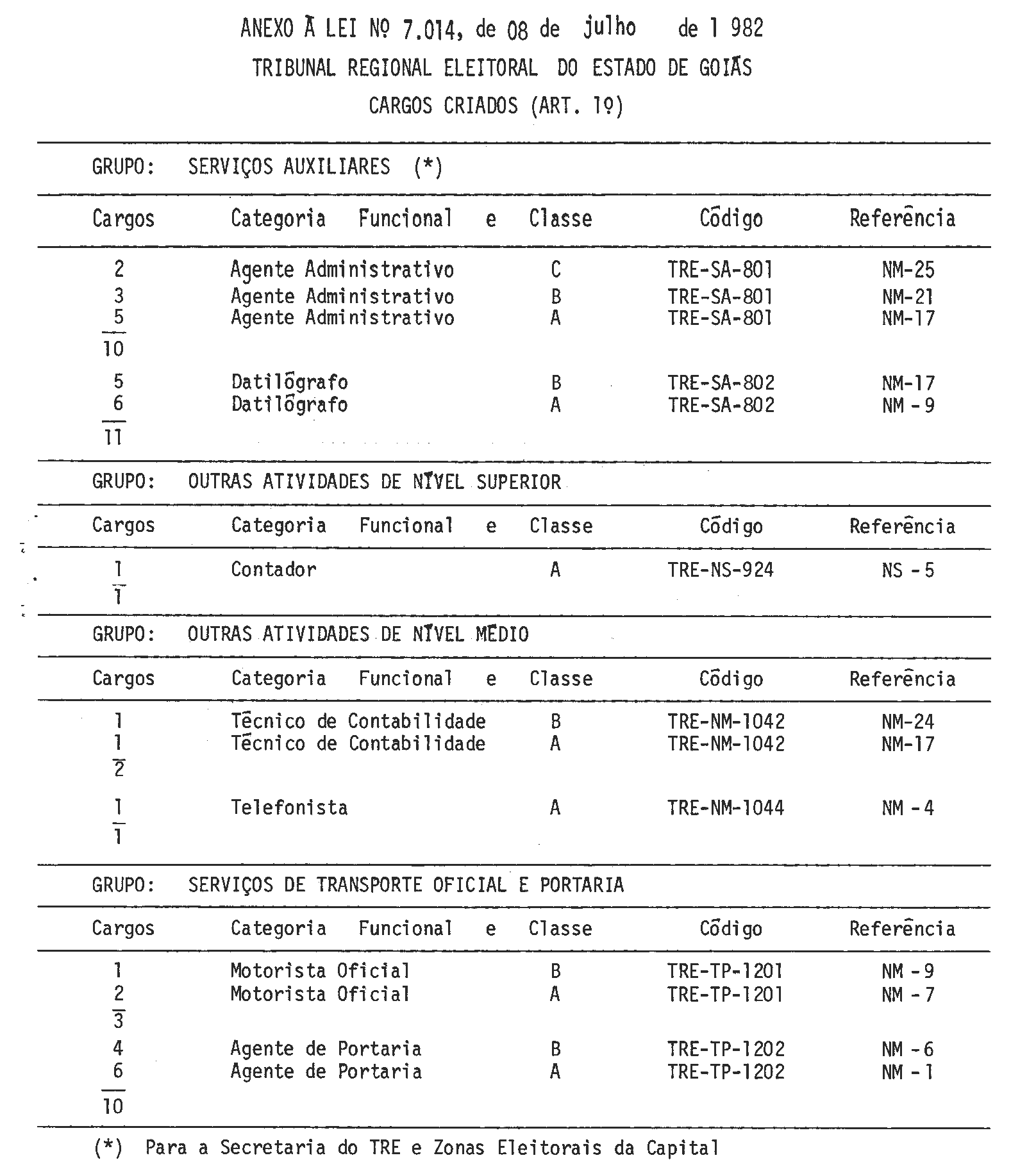 LEI Nº 7.014, DE 8 DE JULHO DE 1982.