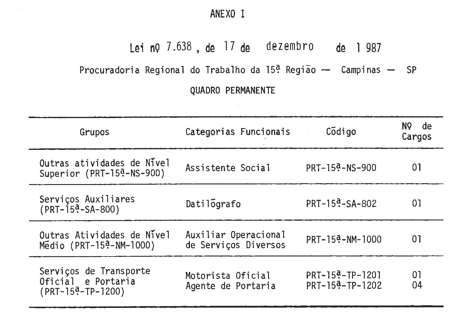 Art. 1º Fica criado um cargo, em comissão, de Procurador Regional do Trabalho da 15ª Região da Justiça do Trabalho, código DAS-101.4, a ser exercido por Procurador do Trabalho de Segunda Categoria.