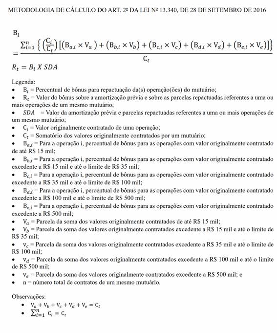 Art. 2º Na liquidação ou na repactuação das operações de crédito rural de que tratam os arts. 1º , 2º e 3º da Lei nº 13.340, de 2016 , serão observadas as seguintes condições: