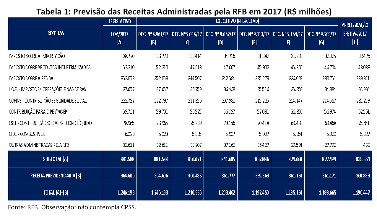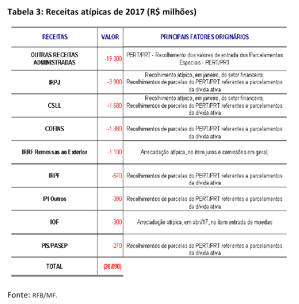No âmbito das contas públicas, o resultado primário do setor público atingiu deficit de 1,69% do PIB em 2017, ante deficit de 2,49% do PIB no ano anterior, situando-se R$52,5 bilhões abaixo da meta oficial de R$163,1 bilhões. No que diz respeito à Emenda Constitucional nº 95, de 15 de dezembro de 2016, as despesas sujeitas ao limite de gastos primários atingiram R$1.259 milhões em 2017, cerca de R$50 bilhões menores do que o valor máximo legal estabelecido. Em relação à regra de ouro (art. 167, inciso III, da Constituição Federal), as despesas de capital superaram em R$28,8 bilhões a realização de operações de crédito em 2017.