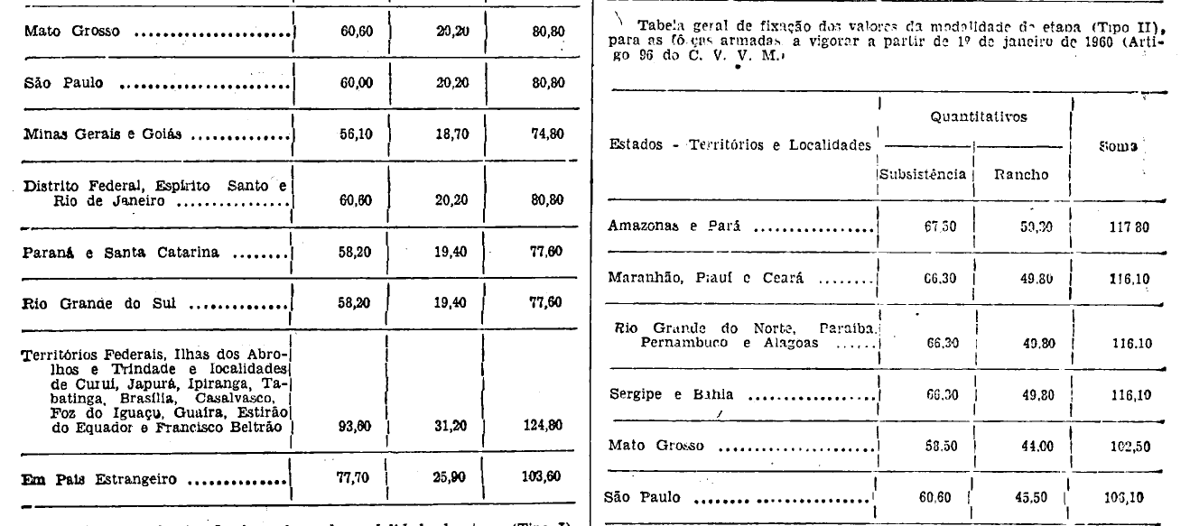 b) acréscimo dessa melhoria de rancho (parágrafo único do mesmo artigo), para os efeitos das tabelas de fixação de valores serão designadas, respectivamente: Modalidade tipo I e Modalidade tipo II, sem interferirem com os complementos de que trata a letra "b" do art. 89 do C.V.V.M.