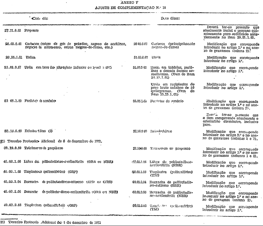 Art. 1º Nos Acordos de Complementação Industrial de números 5, 9, 12, 15, 16, 18 e 19, promulgados, respectivamente, pelos Decretos números 63.098 de 6 de agosto de 1968, 66.782,  de 25 de junho de 1970, 68.610, de 11 de maio de 1971, 68.603, de 10 de maio de 1971, 68.541, de 26 de abril de 1971, 71.074 de 11 de setembro de 1972 e 71.408, de 20 de novembro de 1972, são introduzidas as modificações discriminadas nos anexos I a VII do presente Decreto.