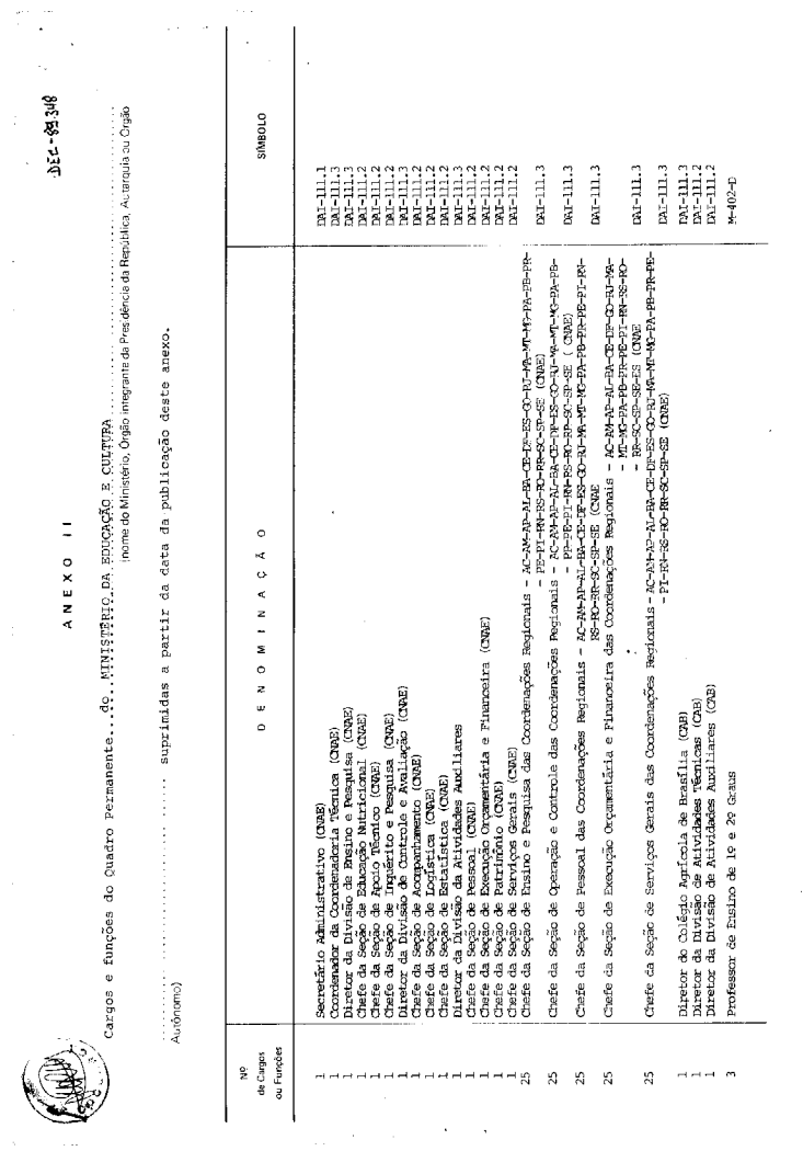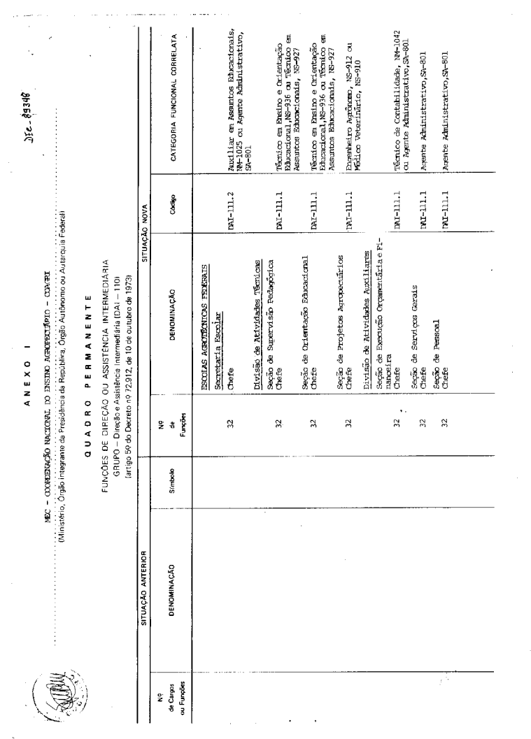 Intermediárias, código: DAI-110, do Quadro Permanente da Coordenação Nacional do