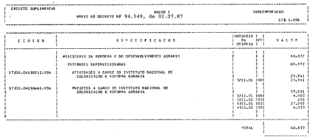 DECRETO No 94.549, DE 2 DE JULHO DE 1987.
