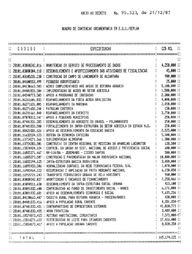 DECRETO No 95.523, DE 21 DE DEZEMBRO DE 1987.