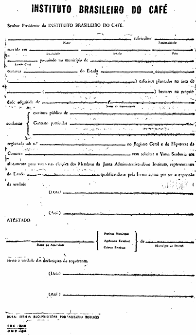 Art. 1º Terá direito a voto na eleição dos Membros da Junta Administrativa (J.Ad.) do Instituto Brasileiro do Café (I.B.C.) todo aquêle que explorar a lavoura cafeeira por conta própria e em extensão considerada econômica.