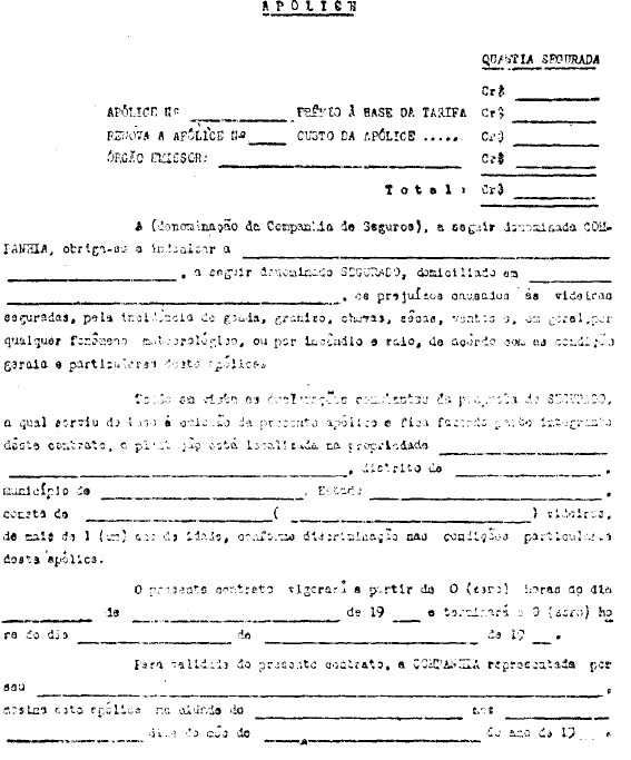 1 - As propostas, apólices e endossos devem ser redigidos de maneira clara e precisa, permitindo o perfeito conhecimento dos riscos cobertos e das características peculiares à plantação.